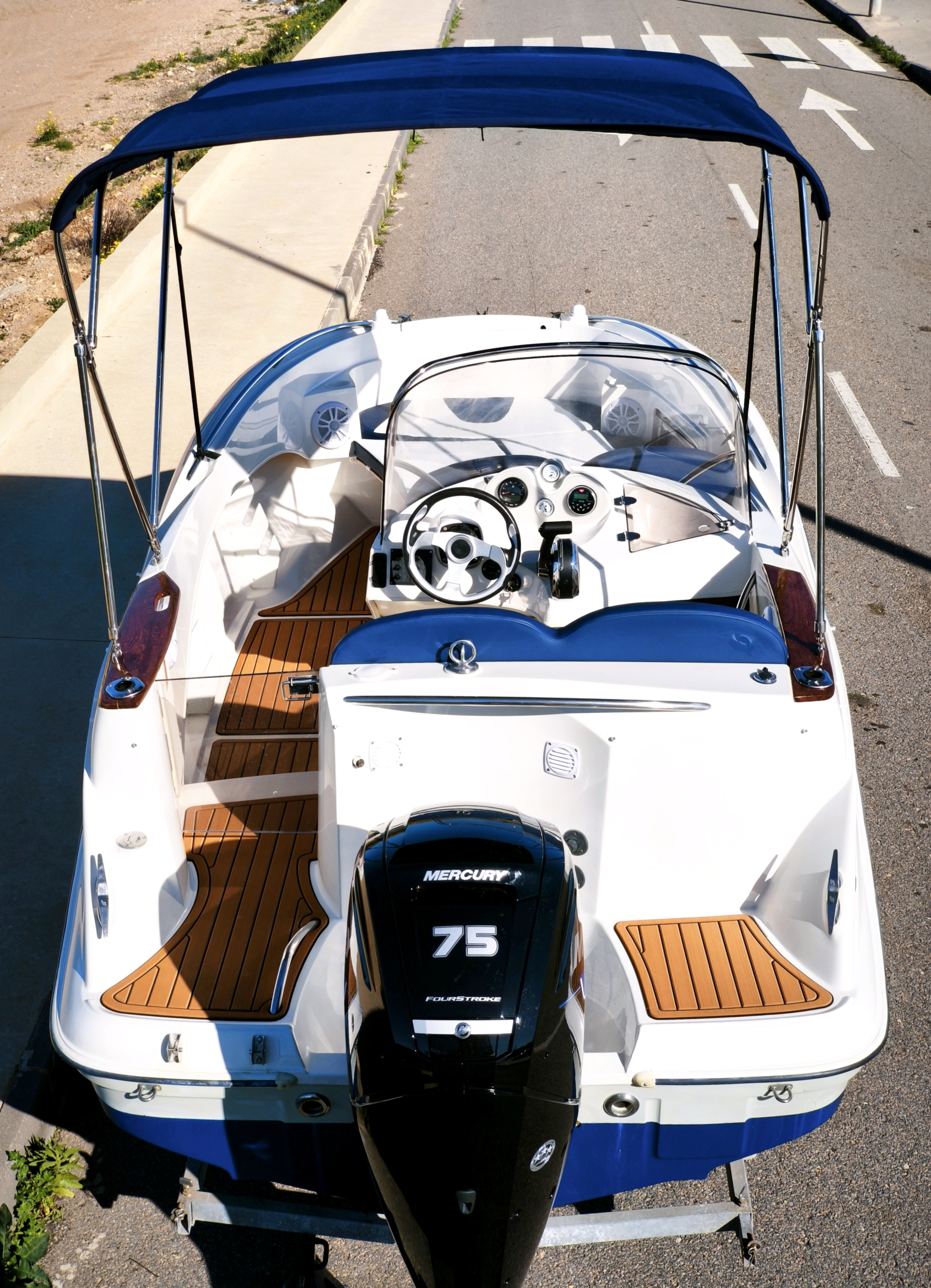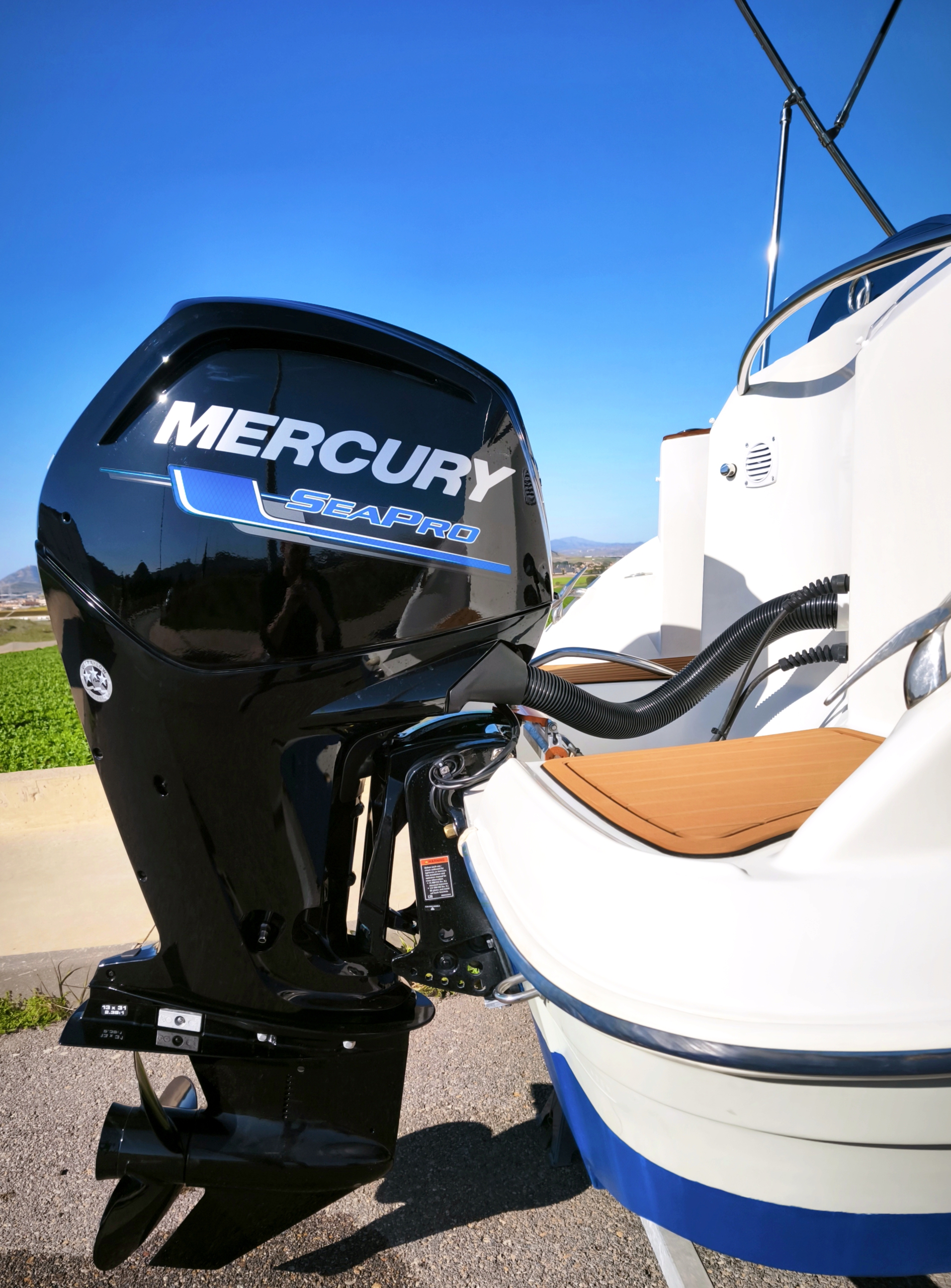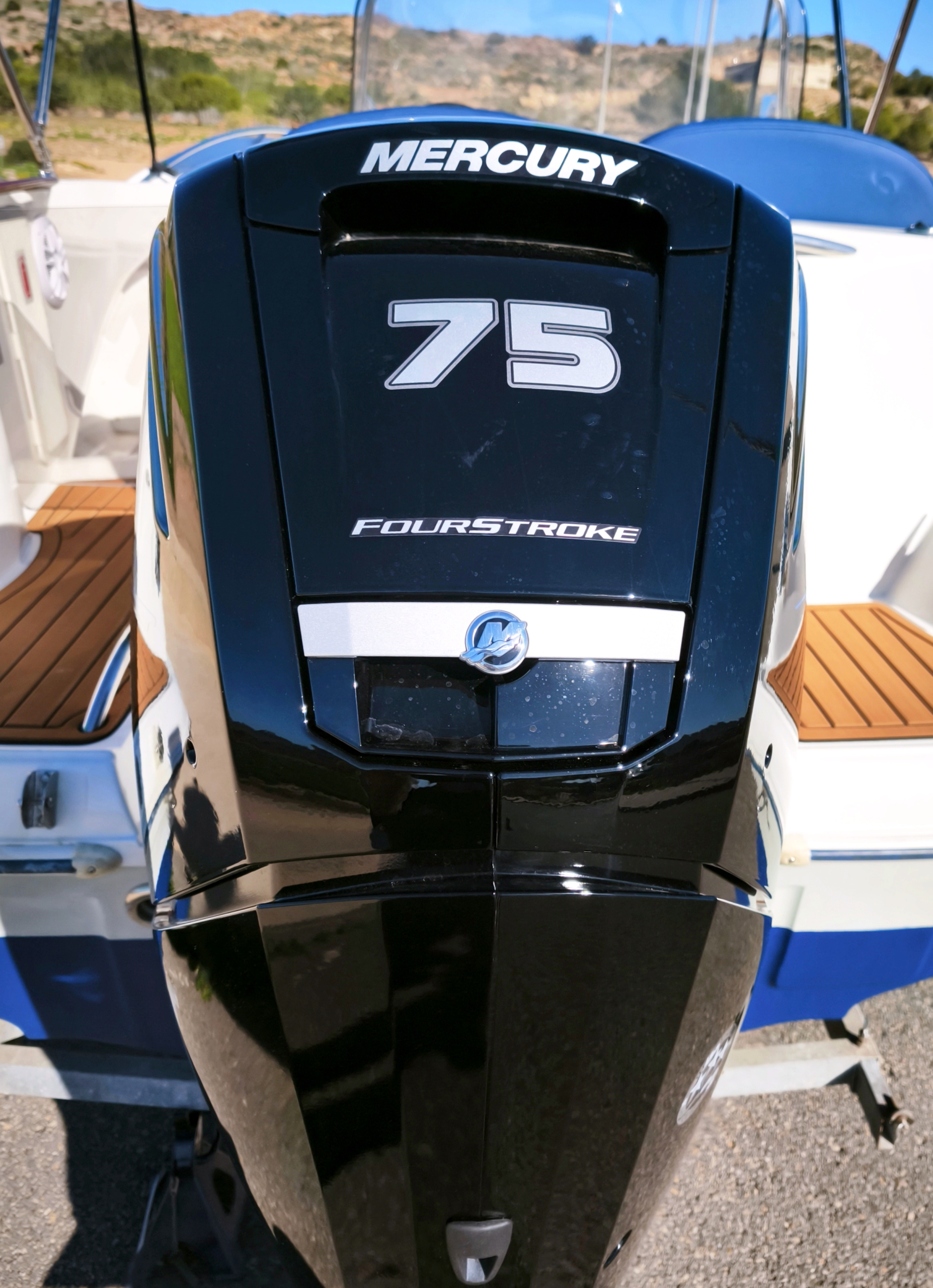 Motorización: Mercury 75 hp Sea Pro (más robusto y fiable) bloque de 2061 cc compartido desde el 75 al 115 hp.